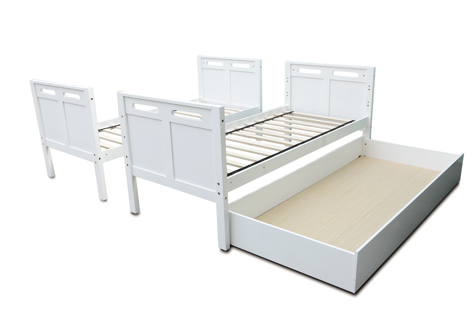 Orbelle’s twin over twin solid wood bunk bed brings style, affordability, and flexibility for families. Crafted from solid pine wood, the color neutral frame blended into any room. Guard rails